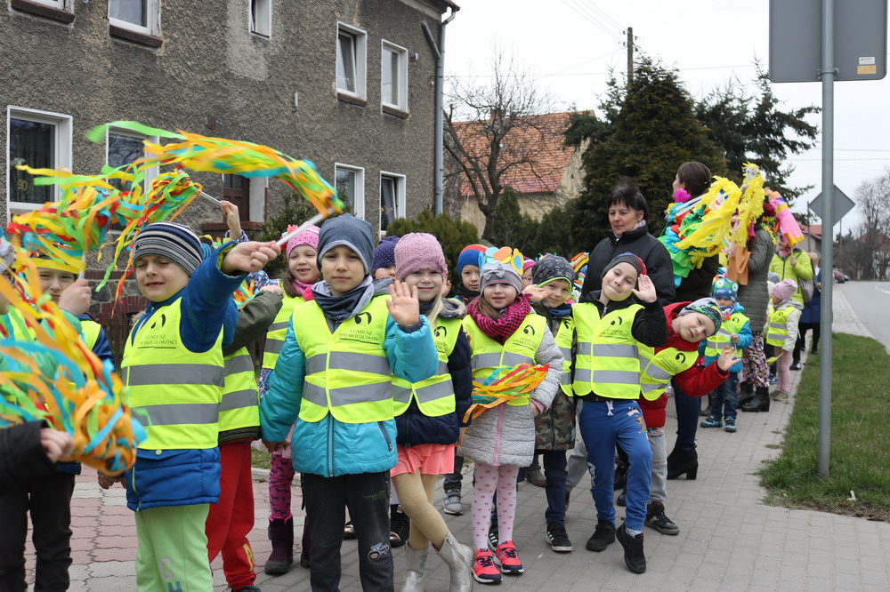 W wiosennym nastroju przemaszerowały przedszkolaki ulicami Jordanowa Śląskiego, budząc do życia kolorami. Uczniowie Szkoły Podstawowej w Jordanowie Śląskim okrzykami przeganiali Zimę i w wesołym tańcu przywoływali Wiosnę.
