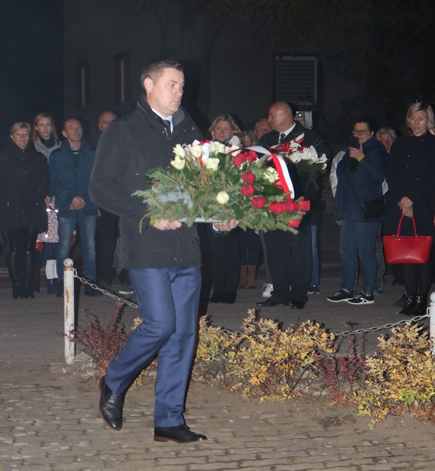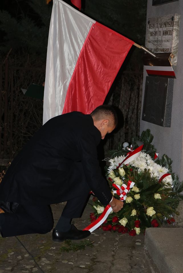 oraz Dyrekcja szkoły złożyli symboliczne wiązanki kwiatów pod pamiątkową
