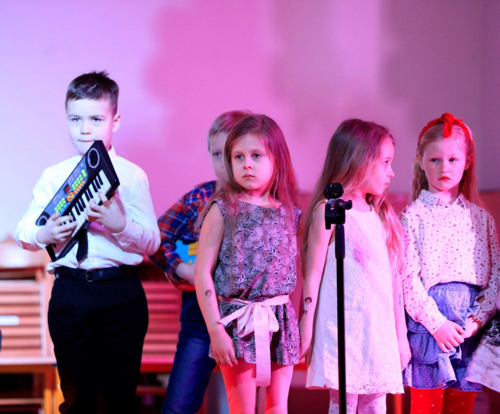 dzieci z oddziałów przedszkolnych z przedstawieniem muzycznym,