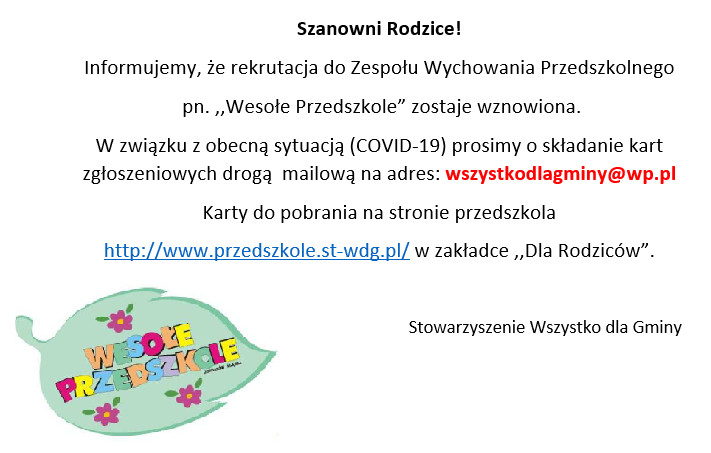 Rekrutacja ,,Wesołe Przedszkole"