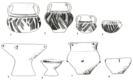 tej kultury. W garncarstwie dominowały wówczas naczynia w kształcie