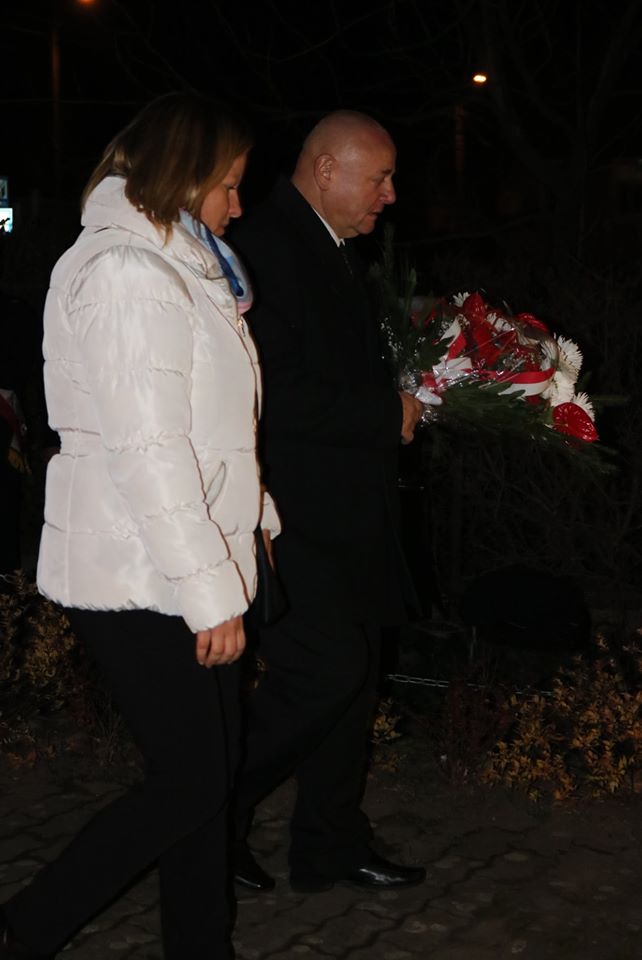 oraz Dyrekcja szkoły złożyli symboliczne wiązanki kwiatów pod pamiątkową