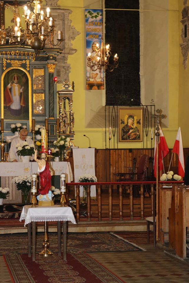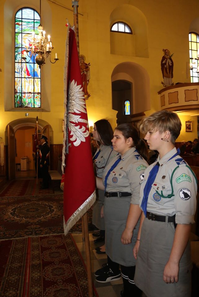 uroczystej mszy świętej w obecności Pocztów Sztandarowych: ZHP, OSP