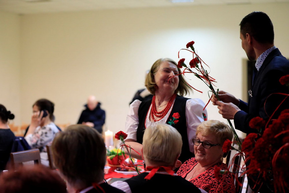 również każdej pani symbolicznego goździka. Kolejno na scenie pojawiły