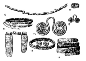 kamiennych, wyposażone w wyroby brązowe. Są to głównie szpile służące